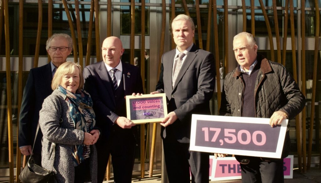 People living with dementia and carers joined Alzheimer Scotland in presenting the petition to Tom Arthur, Minister for Social Care and Mental Wellbeing, at the Scottish Parliament this morning.